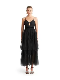 Crafted from lightweight heft and permeable textures, the Phantom Mesh Maxi Dress elegantly drapes to form a dramatic multi layered skirt creating an exaggerated, yet sophisticated statement.