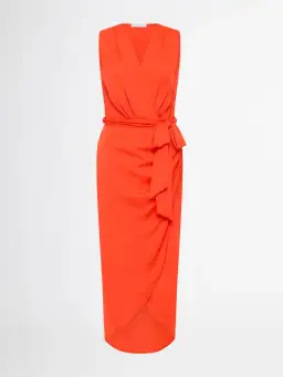 Indulgent bold hues and draping satin silhouettes make up the vibrant Saskia Midi Dress. Showcasing a cross over V neckline, cross over front skirt with pleats at waist and side hip, and elasticated waist.