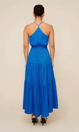 SHEIKE stunning summer classic in cobalt blue. Featuring adjustable shoulder straps & an elasticated waist. Lightweight matt finish non stretch satin fabrication. Bust is fully lined, skirt in unlined. Elasticated waist with self fabric sash tie. Tiered maxi skirt.