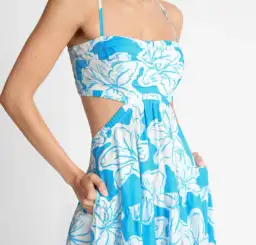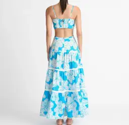 The Tropic Breeze Maxi Dress from Sheike, showcases adjustable straps, an elasticated waist with side cut outs and an inbuilt bra with internal boning.
