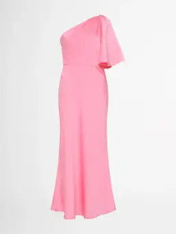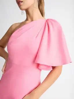 slim fit cut, fitted bodice and one shoulder flared short sleeve