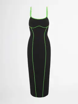 Showcasing a fitted midi length pencil skirt and contrast adjustable shoulder straps, this take the staple black dress and gives it a new burst of life.