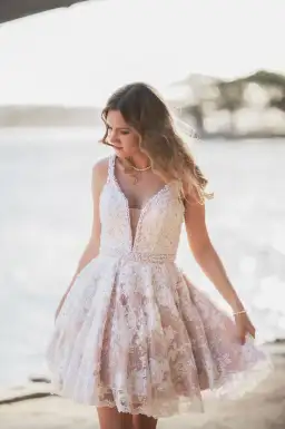 Sherri Hill 50656 Lace Mini Dress White Size 6
