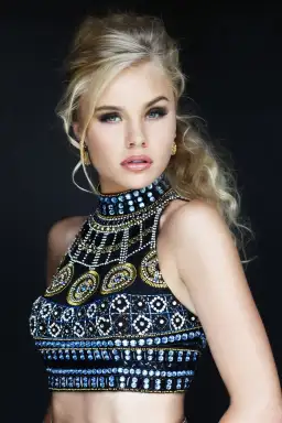 Sherri Hill 11068 High Neck Two Piece Gown Black/Beaded Size 6