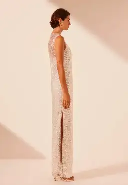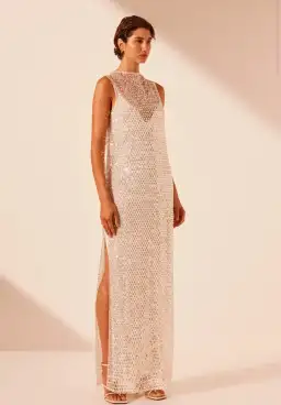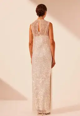 Shona Joy Asteri High Neck Sleeveless Maxi Dress Silver Size 8
