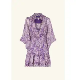 Balloon sleeve ruched mini dress in a light weight semi-sheer chiffon in the exclusive Aurier print.