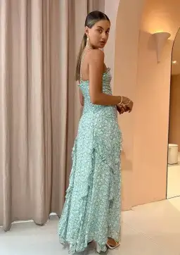 Shona Joy Aurore Ruched Frill Maxi Dress Green Floral