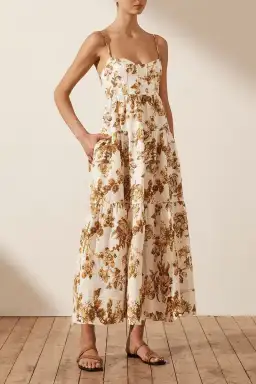 Shona Joy Bella Lined Corded Tiered Midi Dress Print Size 10