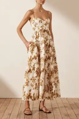 Shona Joy Bella Linen Corded Tiered Midi Dress Print Size 10