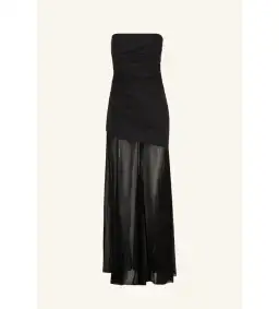 Strapless draped maxi dress in black in a premium stretch cotton blend contrasted with a light weight semi-sheer georgette.