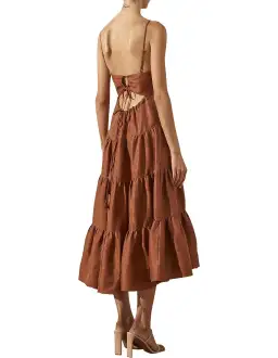 Shona Joy Elsa Linen Tiered Midi Dress Gingerbread Brown Size 12