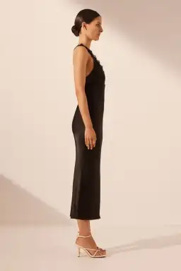 Shona Joy Camille Lace Cross Back Midi Dress Black Size 6