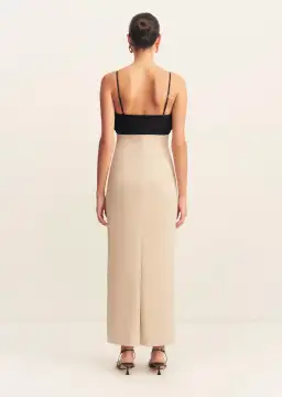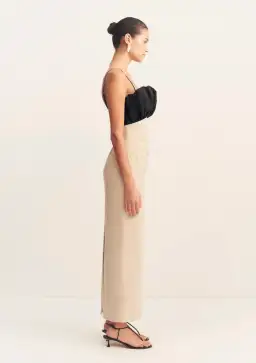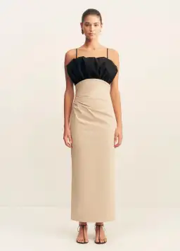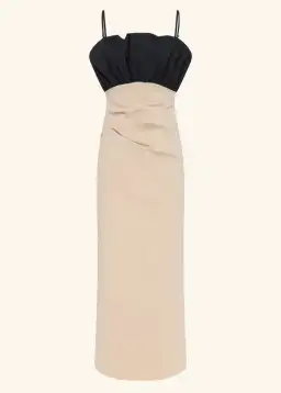 Bubble bodice midi dress in oat milk and black in a premium stretch cotton blend.