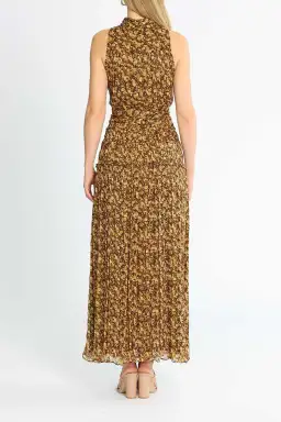 Shona Joy Carmela Sleeveless Midi Dress Khaki Print Size 12