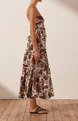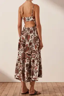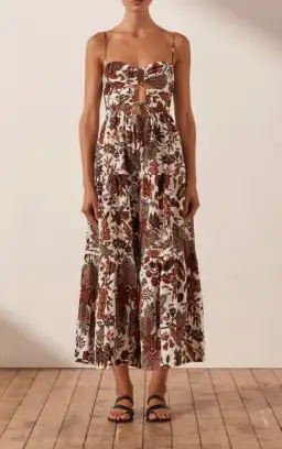 Shona Joy Catalina Lace Up Backless Midi Dress Print Size 8