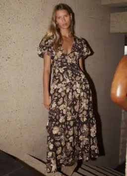 Shona Joy Catalina Plunged Short Sleeve Midi Dress Print Size 10