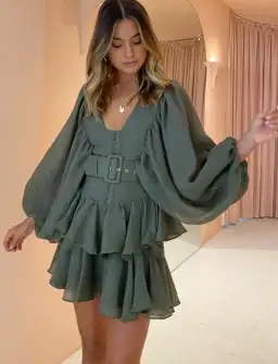 With the amplified proportions of airy balloon sleeves balanced by a hard covered belted waist to synch the waist, Shona Joy's Charlotte Plunged Draped Mini Dress is a flouncy, feminine silhouette ideal for dressing up or down.
