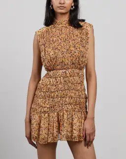 With gathered shoulders and corded ruching through the flounce skirt, the Colette High Neck Sleeveless Corded Mini Dress is a party-season masterstroke from Shona Joy.