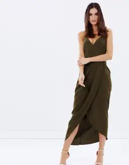 Shona Joy Core Cocktail Draped Maxi Dress Khaki