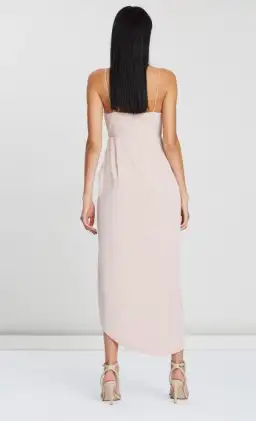 Cut from lightweight fabric in a delicate pale pink hue, the Shona Joy Core Cocktail Draped Maxi Dresswraps fluidly around the body. Shoestring straps and a high-cut split add a sultry touch.