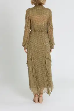 Shona Joy Eleonora Drawstring Frill Midi Dress Olive Khaki Size 8