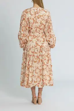 The Shona Joy Flor Midi Dress is a must-have for your vacation wardrobe. Perfect for sun-soaked days, it offers a flattering silhouette with a V neckline and balloon sleeves with elasticated cuffs. Its adjustable drawstring waist adds versatility, and the tiered midi length dress showcases a beautiful floral design.