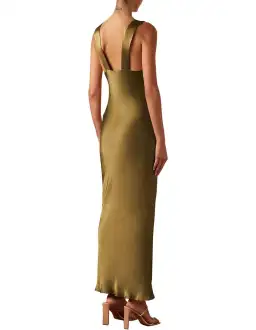 With a distinctively dazzling look, the Giorgia Plunged Midi Dress in Olive Oil by Shona Joy is the perfect cocktail dress. In a silk touch fabrication, this dress offers a sultry plunging neckline, sleeveless feature, exaggerated empire waist and midi length skirt, cut on the bias. Hire this glamorous dress for your next evening event.