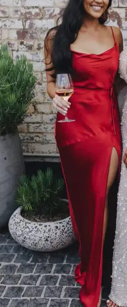 SHONA JOY La Lune Bias Cowl Maxi With Split - Red