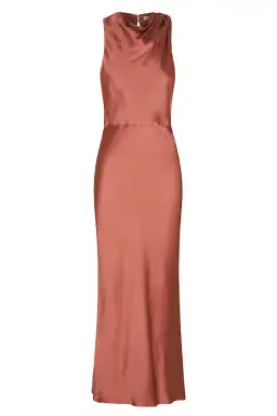 Shona Joy La Lune High Neck Midi Dress Terracotta Size 8