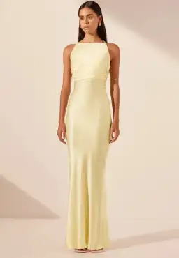 ‘La Lune’ High Neck Ruched Maxi Dress in stunning Lemon
