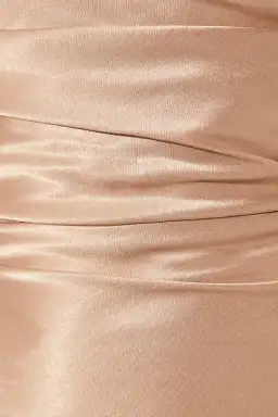 Asymmetrical maxi dress with open cowl back in gold with a luxurious satin finish.