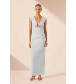 Shona Joy Lani Plunged Cut Out Maxi Dress Sky Size 8