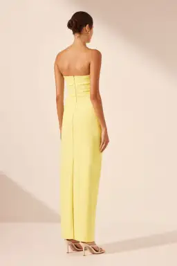 Shona Joy Lani Strapless Draped Maxi Dress Lemon