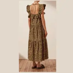 Shona Joy Lilou Ruffle Square Neck Midi Dress Floral Size 10