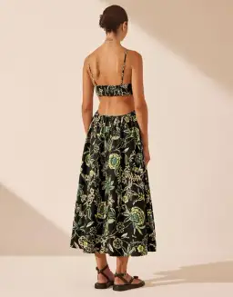 Cut out midi dress with open back in the exclusive Lina print in a GOTS certified organic cotton.