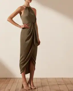 Shona Joy Luxe Tie Front Sleeveless Midi Dress Pine Valley Size 6