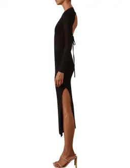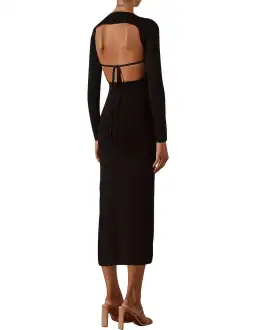 Shona Joy Lyon Long Sleeve Backless Midi Dress Black Size M/Au 12