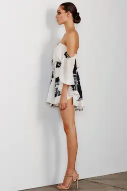 Shona Joy Manuela Off The Shoulder Drawstring Mini Dress Print Size AU 6