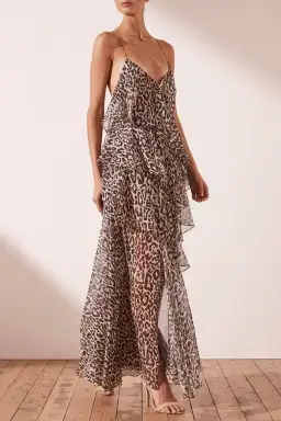 Shona Joy Mariposa Cross Back Maxi Dress Leopard Print