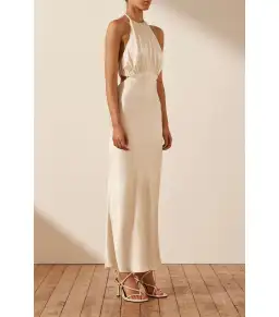 Shona Joy Milo Ruched Open Back Midi Dress in Coconut Size AU 12