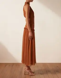 Shona Joy Noemi Sleeveless Button Up Midi Dress in Siena