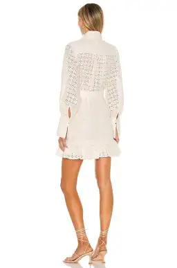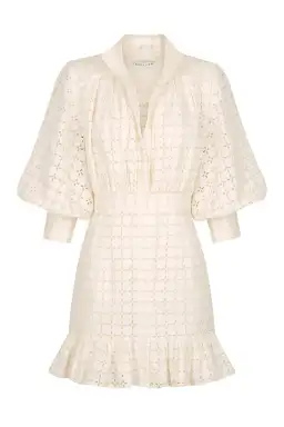 Shona Joy Penelope Linen Balloon Sleeve Mini Dress Ivory Size AU 10 / US 6