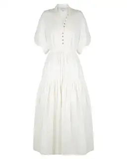 Shona Joy Priscilla Pin Tuck Short Sleeve Midi Dress White Size AU 6