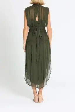 Shona Joy Safira Sleeveless Open Back Midi Dress in Olive Green Size 6