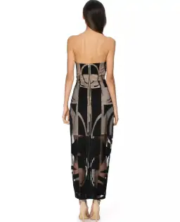 Mixing crisp, black lace with a soft, apricot hue Shona Joy Seidler Bustier Midi Dress makes a chic and feminine choice for the party season. Team with delicate heels for an elegant finish.