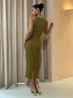 Shona Joy Simone V Neck Cut Out Midi Dress in Cumin Size 10