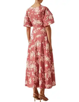 Shona Joy Cali Short Sleeve Cut Out Midi Dress Pink Floral