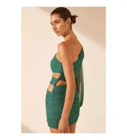 Shona Joy Margot One Shoulder Cut Out Mini Dress in Evergreen Size AU 10