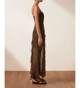 Shona Joy Sofia Ruched Frill Maxi Dress Brown Size AU 10
