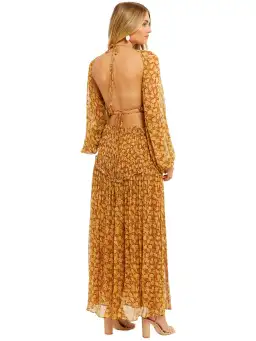 Make a statement with the Sunset Cut Out Dress from Shona Joy. This beautiful floral midi stands out with its backless design, gathered yoke waist, and long balloon sleeves for extra flair. Perfect for an upcoming luncheon or as a wedding guest, you can hire this dress. It boasts a semi-sheer look, a flattering scoop neckline, and layered pleat detailing for a stylish touch.
